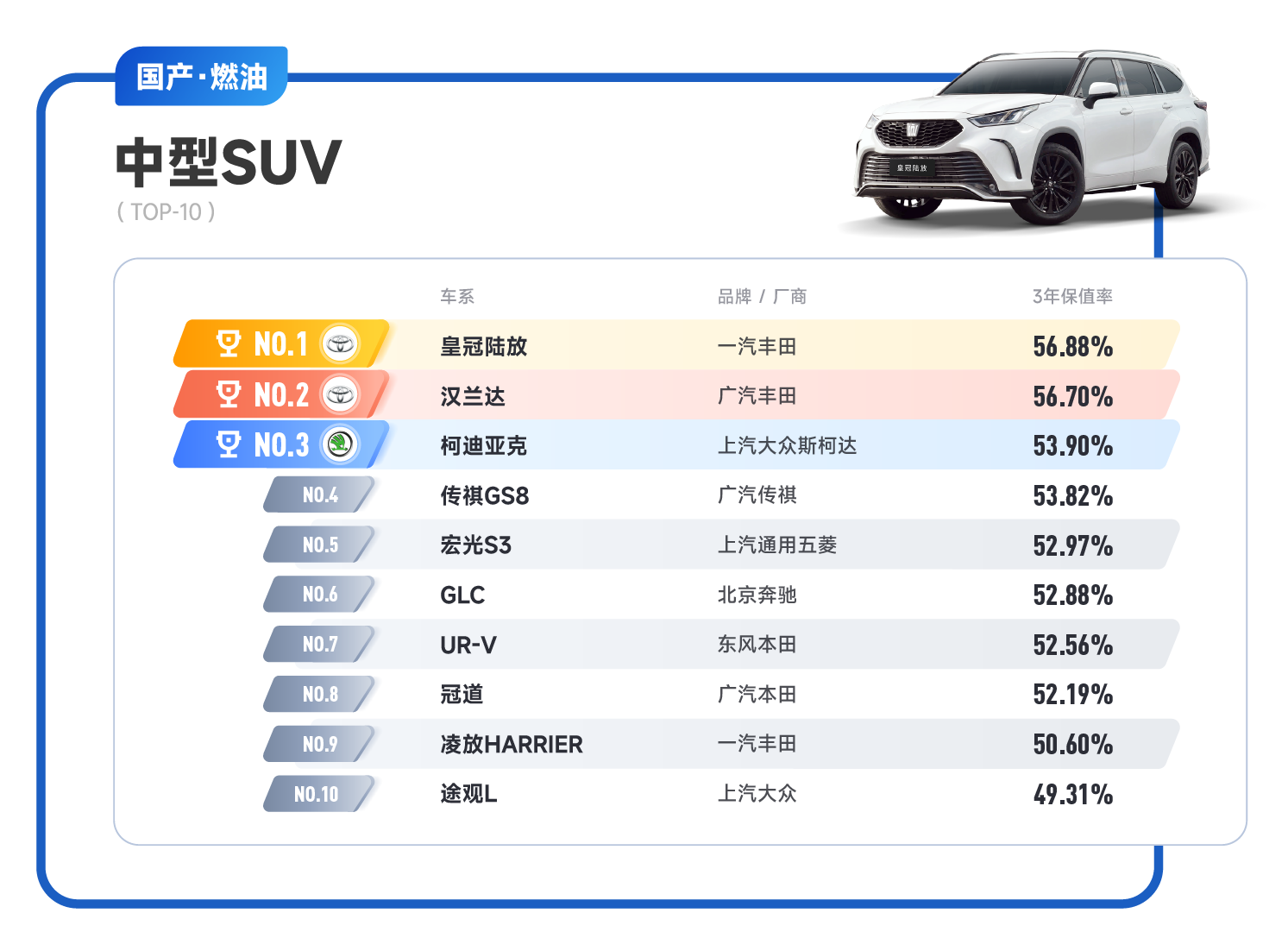 2025年12月12日,2025中国汽车巴芒达奖盛典在北京华尔道夫酒店隆重举办。 当前,中国汽车产业正处在数智化浪潮的核心,全行业加速变革,各方力量协同推动产业迈向高质量发展。面对崭新的机遇与挑战,汽车产业如何与更广泛的产业生态协同创新、实现共赢,成为业界共同关注的焦点。 本届年会以“数智同行·耀见未来”为主题,深入探讨了汽车产业在数智化转型进程中的关键作用与创新路径。活动汇聚了包括汽车厂商、银行、汽车金融机构、经销商集团、二手车交易市场、汽车服务平台负责人,以及行业领导、跨界嘉宾在内的100多位行业伙伴,共同见证了这场聚焦趋势、链接生态的行业盛典。 ![]() “巴芒达”奖由中国国际贸易促进委员会汽车行业分会汽车金融暨保值率研究委员会指导,创立于2019年,旨在将世界顶级投资者寻找优质企业、注重价值投资、坚持长期主义的理念,引入汽车金融与保值率研究领域,推动汽车行业健康发展。 在保值率波动幅度较大的2025年,依然有一批优质车型保值率表现优异,这些具备强大品牌号召力、过硬技术和产品实力的市场佼佼者,展现出抵御市场风暴、穿越低谷的高价值、高保值特色。 巴芒达奖盛典发布《2025中国汽车保值率排行榜》,众多优秀企业榜上有名。车型保值率奖项获奖企业有上汽通用、上汽大众、一汽丰田、福特汽车、东风本田、捷达、长安马自达、雷克萨斯、保时捷、捷尼赛思、比亚迪、AITO问界、小鹏汽车等。 ![]() 左一:中国国际贸易促进委员会汽车行业分会会长 王侠 ![]() 左一:中国国际贸易促进委员会汽车行业分会会长 王侠 在2025年中国汽车巴芒达盛典中,一汽丰田汽车销售有限公司获得汽车保值率管理品质奖,一汽丰田深化长期主义价值体系,二手车团队在残值管理上持续深耕,以170项严苛认证标准与“正准测”双认证筑牢品质底线。一汽丰田首创“时光焕新计划”,各主力车型保值率持续领跑细分市场。依托全国600余家认证网点与2年5万公里联保服务,一汽丰田以全周期价值保障,让高保值成为用户可感知的品牌信仰。 ![]() 左:中国国际贸易促进委员会汽车行业分会会长 王侠 “时光焕新计划”重塑二手车价值,以保值率引领品牌长期竞争力 在二手车市场,保值率是衡量品牌价值的终极标尺。它不仅仅是产品耐用性的体现,更是品牌美誉度、售后服务体系、供应链能力和用户忠诚度的综合反映。经过多年发展,一汽丰田构建了清晰的“双品牌”战略,以满足不同客户需求,包括一汽丰田认证二手车和一汽丰田安心二手车。随着汽车以旧换新政策的持续深化,一汽丰田展现出独特的竞争优势,截至2025年,一汽丰田在全国已建成超过660家认证二手车销售店、97家二手车中心。更值得一提的是,在面对“内卷式”竞争的市场背景下,众多汽车厂商通过调整价格政策等方式来维持其竞争力,一汽丰田依然坚持“长期主义”,重磅推出 “时光焕新计划”,首创“车龄增值补贴”机制,基础补贴随车龄每年递增1000元,将车龄从“贬值标尺”转为“资产凭证”,通过该计划置换的旧车,在经过170项严苛检测和整备后,会作为“认证二手车”销售,并享受2年或5万公里的全国联保,从而保障车辆下一任车主的权益,稳定整个生命周期价值链;此举不仅可以激活存量市场,锁定忠诚用户,还进一步强化了其产品“耐用、保值”的市场认知。 正因为一汽丰田对于长期主义价值体系的深刻践行,将车辆视为一个长期的价值载体,而非一次性消费品,不断为二手车交易注入安全感与价值感,成为其高保值率的核心支撑。从具体车型来看,一汽丰田在各个细分市场都有保值率表现突出的产品,皇冠陆放作为旗舰SUV,在中型SUV市场保值率表现最为亮眼;RAV4荣放在紧凑型SUV市场同样保持着稳定的保值率。 皇冠陆放:“欲戴皇冠,必承其重” 2021年8月,皇冠以高端子品牌的身份回归,作为一代人心中的豪华记忆,皇冠的回归自带光环,陆放成为皇冠品牌首发旗舰SUV。承载着“皇冠”的历史情怀,也肩负着在新时代开拓高端市场的任务,一汽丰田为其设立了涵盖品控管理、生产工艺、用料材质、静谧设计的“皇冠级标准”。出色的产品魅力让皇冠陆放上市即成为爆款,上市短短48个小时订单销量便突破万辆。皇冠陆放传承了皇冠品牌的优质基因,基于TNGA 架构的高刚性车身,配上丰富的智能化与安全配置,追求极致的产品品质,极低的用车成本,巨大的空间实用性,使陆放拥有了堪称理财产品的保值率。 ![]() 国产燃油中型SUV排行榜 ![]() 国产油电混动SUV排行榜 在激烈市场竞争中,为满足多元化用户需求、平衡当下与未来政策与环境,皇冠陆放采用双动力布局的产品策略,其燃油车型和油电混动车型的三年保值率分别位居国产燃油中型SUV级别和油电混动SUV级别排行榜第一名,皇冠陆放将“省心、省钱、安全、保值”汇集于一身,不仅能实现“省钱”与“省心”的平衡,还以全面的安全设计和高保值率满足家庭用户的核心需求。 RAV4荣放:“销量王者,价值标杆” 作为城市SUV的开创者,RAV4荣放从1994年正式量产开始到2025年广州车展第六代车型正式上市,已经有31年的积累与沉淀,不仅成为丰田品牌销量的重要支柱,也成为紧凑型SUV市场的“常青树”。第六代车型是一次由内到外的全方位革新,外观采用全新硬派设计,整体风格更接近“小普拉多”,力量感十足